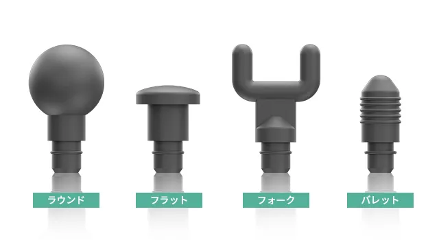 ラウンド、フラット、フォーク、バレットのアタッチメントが付属しています。主要な筋肉グループ、小さな筋肉部分、首と背中、そして関節など体全体的に使うことができます。