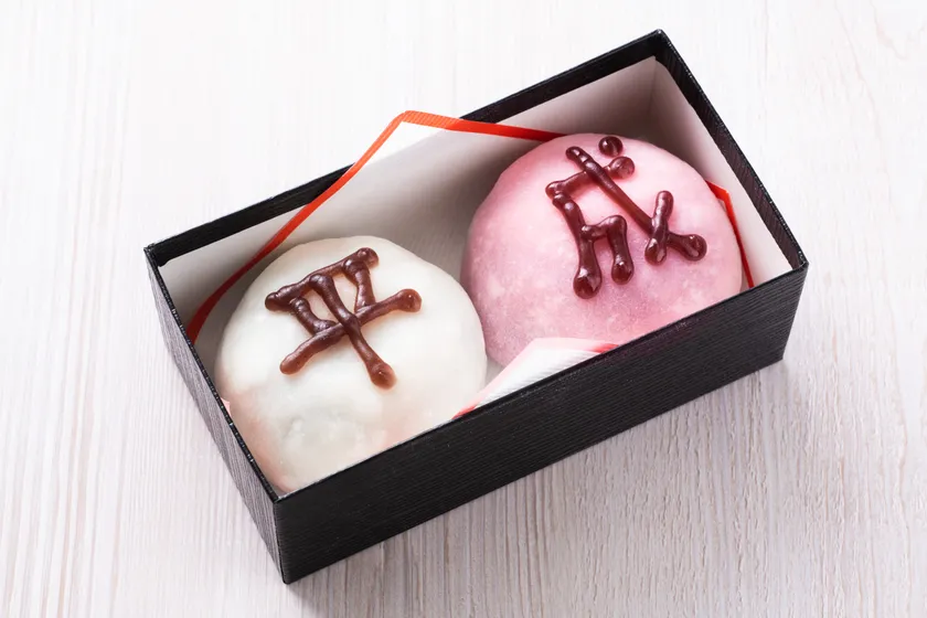そこで今回、多くの方々に「先見の明」でジャンボ宝くじを当てて、「幸福な家庭」を築き、「相手を喜ばせてあげてほしい」という思いを込めて、おめでたい紅白のオリジナル大福を考案しました。