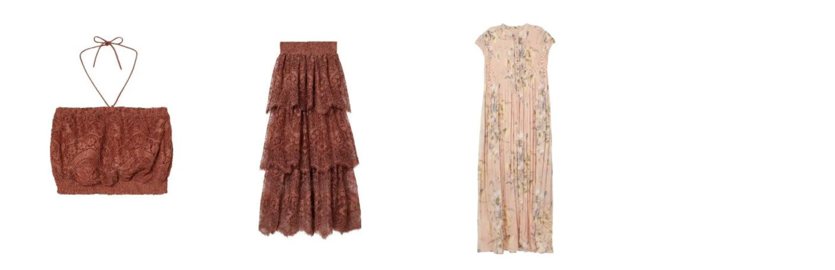(左から)トップス ¥1,299(税込)、スカート ¥5,999(税込)、ワンピース ¥5,999(税込)