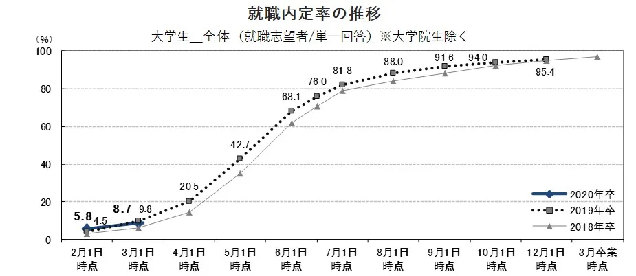 3月1日時点での大学生の就職内定率は8.7% ※大学院生除く