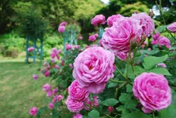 自然の起伏を生かした園地で、約90種類・およそ2,000本のバラを楽しむことができます。原種や英国から直輸入したバラを観賞できる散策型のローズガーデンは、自然の景観と調和し、ベンチに座ってくつろいだり、写真を撮ったり気軽にバラを楽しむことができます。