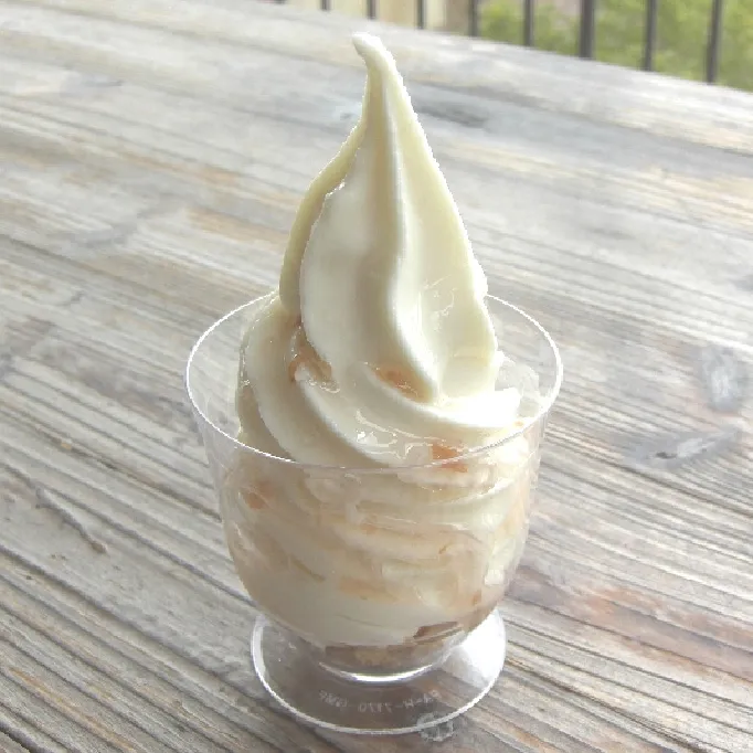 園内のテイクアウトコーナーでは、ローズジャムを使った特製ソースをたっぷりかけたオリジナルのソフトクリームを販売。