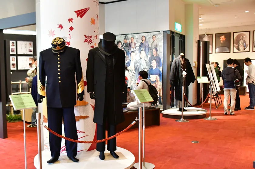 展示衣装は、同ドラマで、西郷隆盛役を演じた鈴木亮平さんが着けた陸軍大将の軍服、大久保利通役の瑛太さんのフロックコート、島津斉彬役の渡辺謙さんの羽織はかまなど。