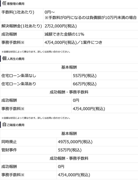 いずれの債務整理手続でも弁護士費用の分割払いは可能です。