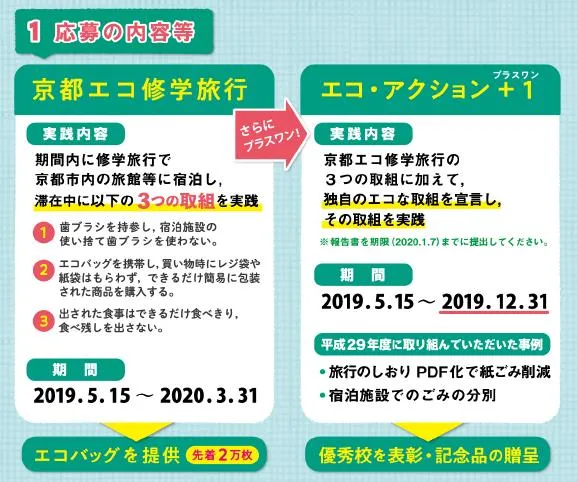 対象期間を拡大!春出発の学校も参加いただけます♪ ~学校独自でアイデアを出し,修学旅行中に取り組んでいただく “エコ・アクション+1”への,皆様の挑戦をお待ちしています!~