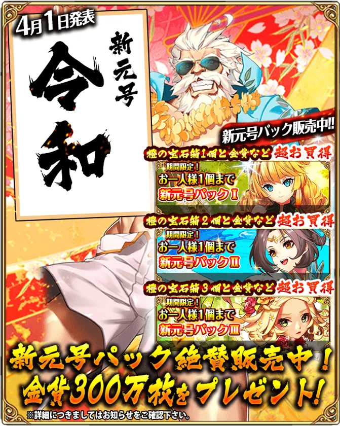 「ハーレム伝説」がゲーム業界最速となる新元号を祝した 前祝いキャンペーンを即開催! 新しい時代の幕開けに変化対応スピード運営を目指す