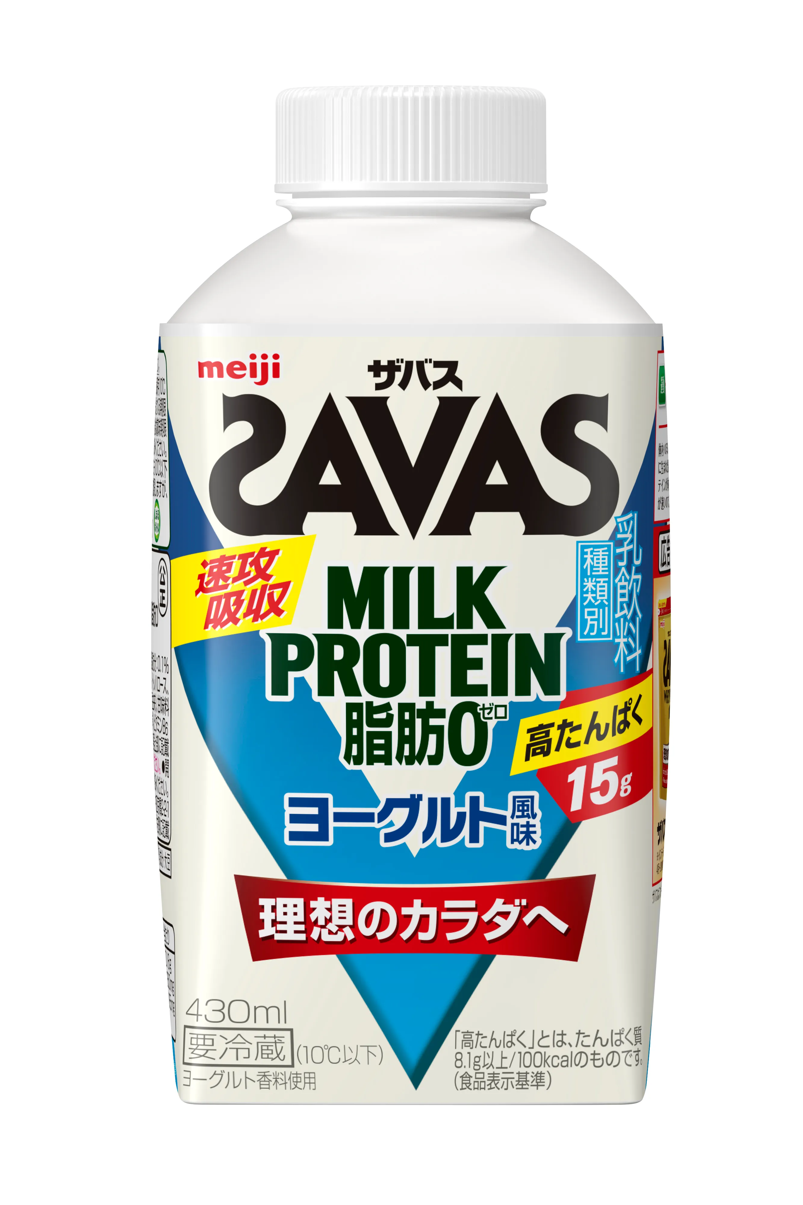 また、同日より「(ザバス)MILK PROTEIN脂肪0ヨーグルト風味」「(ザバス)MILK PROTEIN脂肪0バナナ風味」が全国新発売いたします。