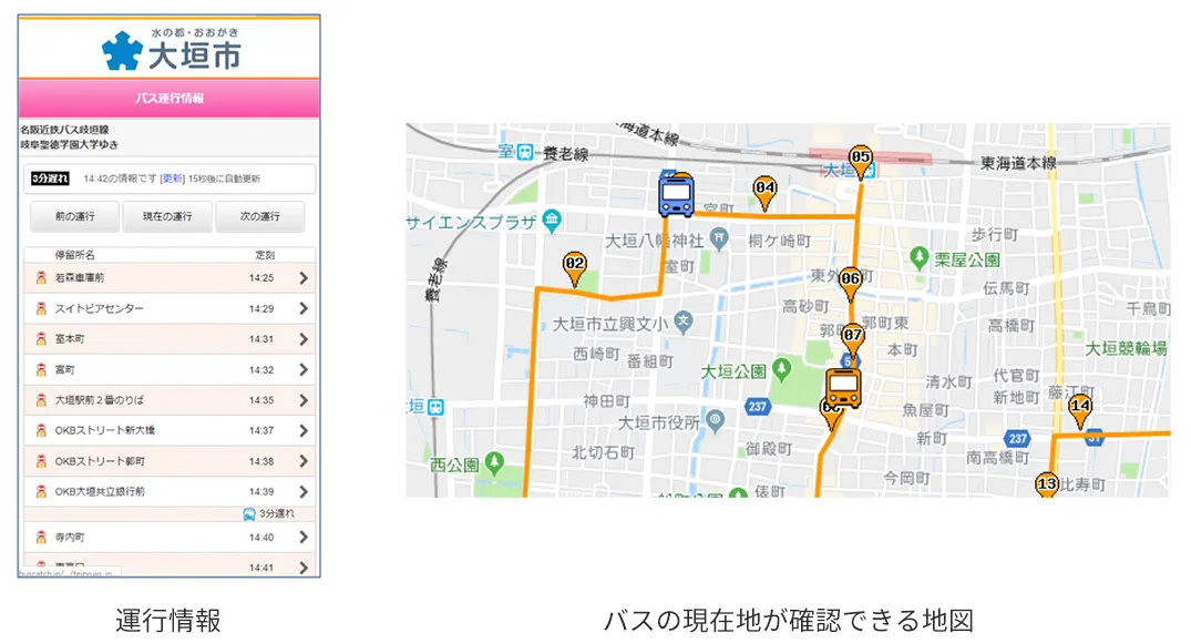 | サービスURL | スマートフォン用: https://buscatch.jp/rt/top.php?id=ogaki-city PC用: https://buscatch.jp/rt/pc/index.php?id=ogaki-city |