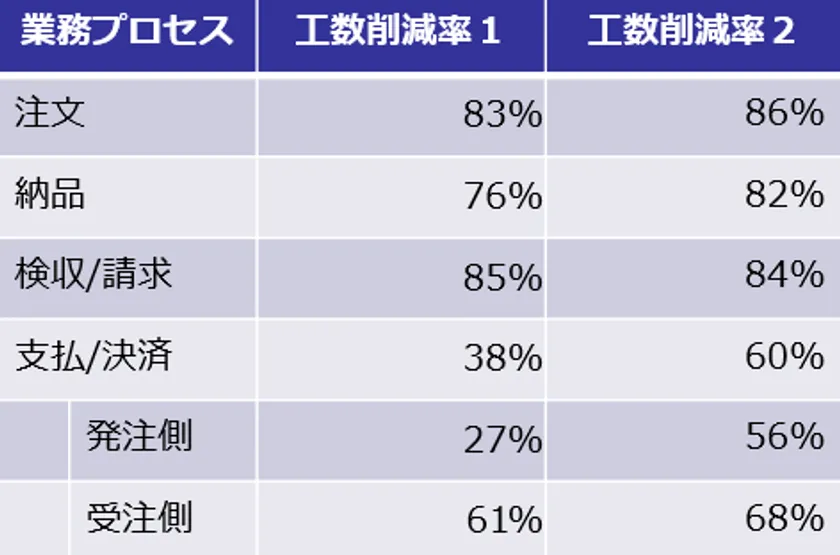 クラウドERP「SmileWorks」に商流EDI(※1)+金融EDI(※2)を連携させる「決済・商流情報連携基盤」の実証結果は以下の通りです。
