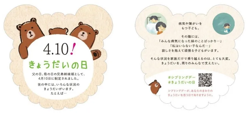 4月10日が『きょうだいの日』に制定されました 「きょうだい」を知る入口に。そしてすべての兄弟姉妹の日へ ~#きょうだいの日 #シブリングデーをつけてつぶやこう~