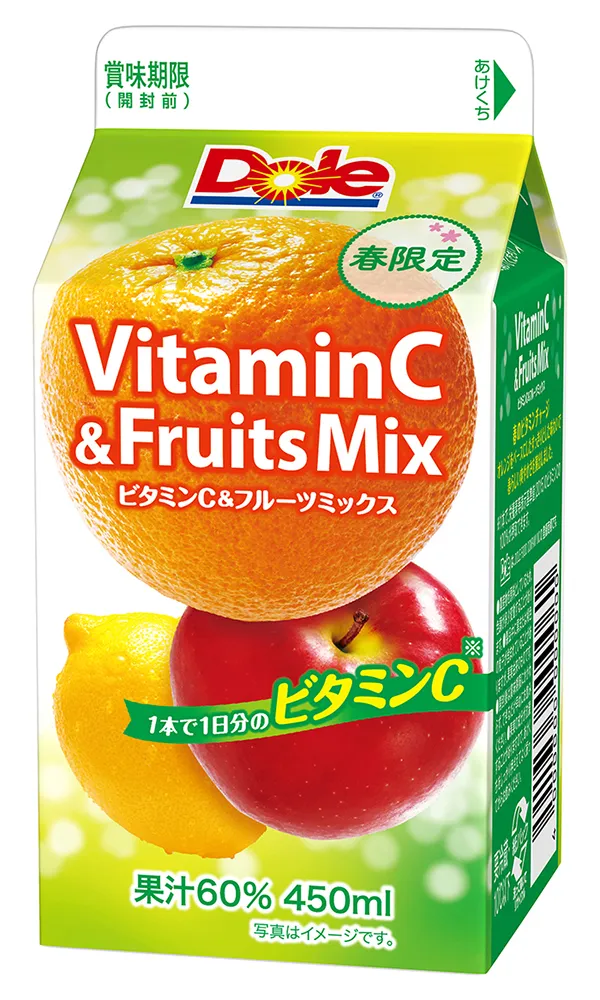 『Dole(R) Vitamin C & Fruits Mix』は、1日分のビタミンCを配合した、春の気だるさをリフレッシュする気分転換飲料です。