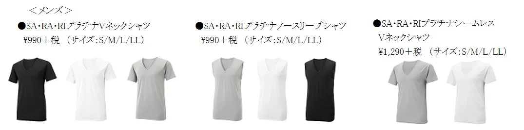 毎日快適に着て頂きたい、そんな想いから開発した「SA・RA・RI」インナーの肌触りの良さはそのままに、これからの季節に嬉しい抗菌・防臭を実現するプラチナクリーン加工を施しました。また、従来品よりも極細繊維を使用し吸水速乾性を18%アップ。さらに快適な着心地となりました。
