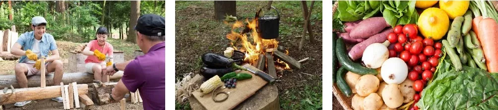 そのほかにも、ヨガインストラクター岡田茉里乃さんによる「スターライトまりのヨガ」、薪割から火起こしまで楽しめる「ブッシュクラフト体験」など内容盛りだくさん。様々なプログラムで、非日常の一晩をお過ごしください。また、到着から出発までの時間は、ザファームのアクティビティや天然温泉を自由にご利用もいただけます。