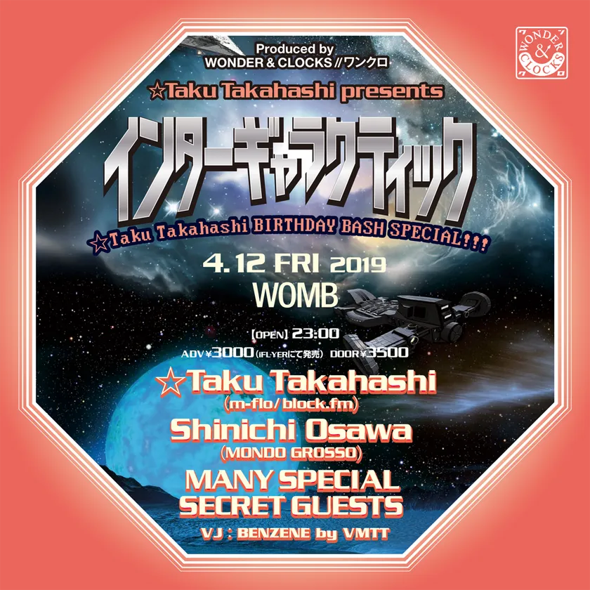 株式会社WONDER&CLOCKSと渋谷の人気クラブWOMBとの共催による音楽イベント「☆Taku Takahashi presents インターギャラクティック」が、4月12日(金)にWOMBにて開催されます。