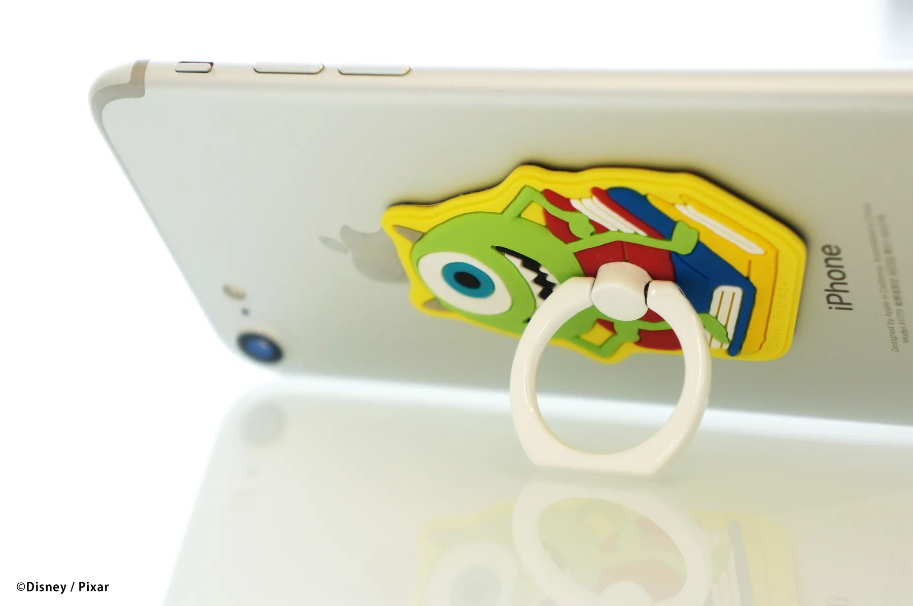 「トイ・ストーリー」や「モンスターズ・インク」のPIXARキャラクターのリングホルダーです。キャラクター部分はキズが付きにくく、柔らかいラバー素材を使用しました。