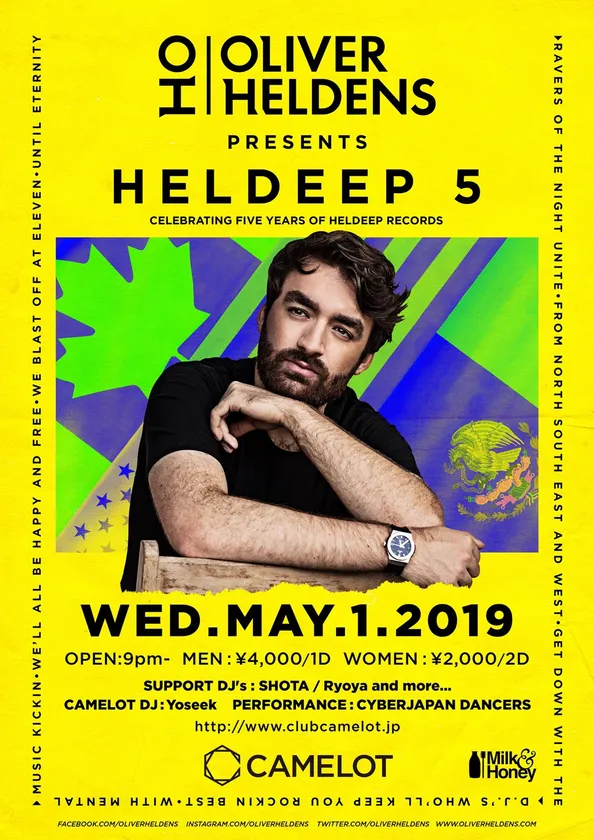 東京都渋谷区にあり、日本最大級のキャパシティ・動員数を誇るクラブ、『CLUB CAMELOT』の運営をする株式会社キャメロットは、2019年5月1日(祝・水)に『Oliver Heldens Presents HELDEEP 5』を開催することが決定いたしましたのでお知らせします。