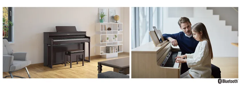 『HP704』(ダークローズウッド調仕上げ)/『HP704』(ライトオーク調仕上げ)の演奏イメージ