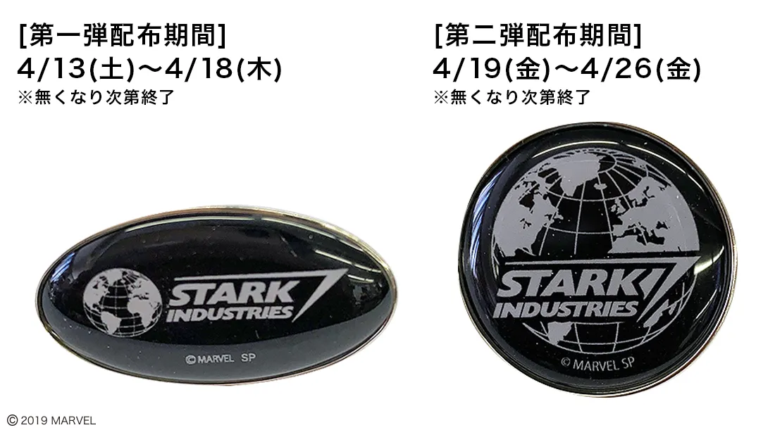 【特典2】税込3,240円以上お買い上げいただいたお客様に、会場限定「スターク・インダストリーズ」デザインのピンバッジを1会計につき1個 先着でプレゼントいたします。