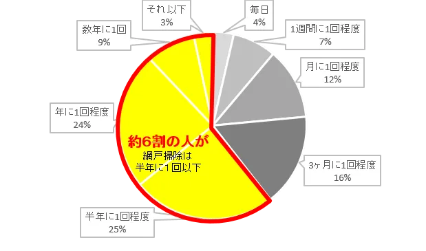 気にかけても思ったようにできない網戸掃除、掃除は半年に1回以下が6割以上!