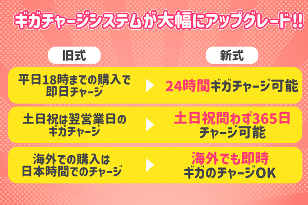 24時間365日いつでもどこでも自動ギガチャージが可能