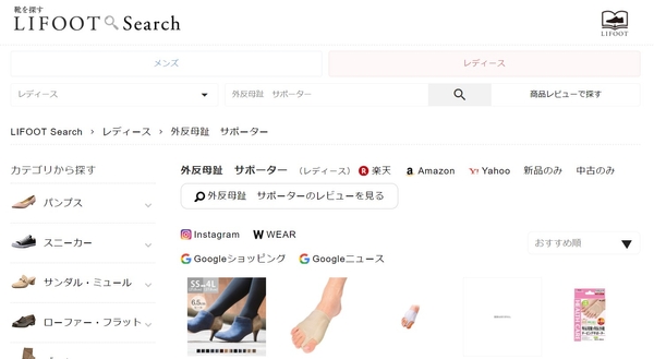 株式会社エルツ・インターナショナルが運営する靴の検索サイト「靴を探すライフットサーチ」では、「外反母趾」など、足のお悩みに関するワードでも商品を検索することができます。