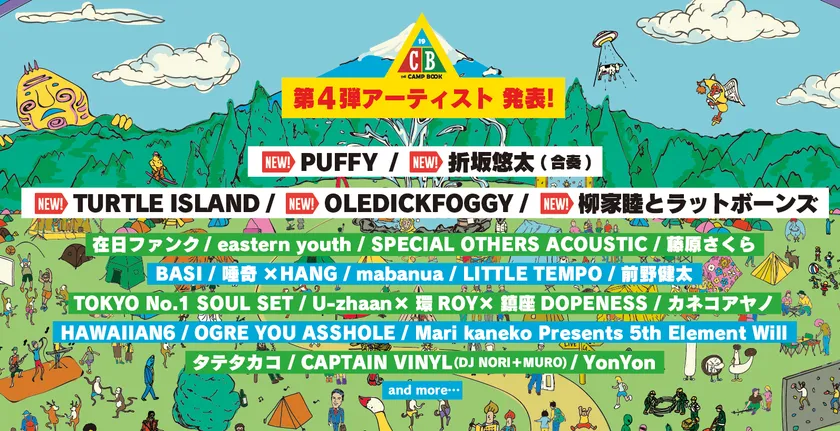 イベントの目玉となるヘッドライナーですが、『THE CAMP BOOK 2019』初参加となるPUFFYが決定。その他、4組のアーティストも新たに参加が決まり、THE CAMP BOOKのページに花を添えてくれます。