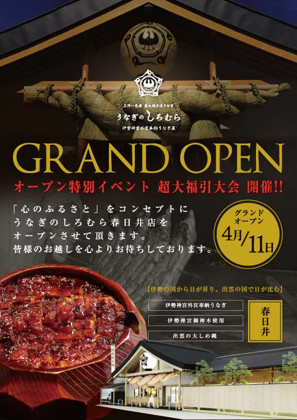 ■うなぎのしろむら 春日井店4月11日(木)GRANDOPEN!