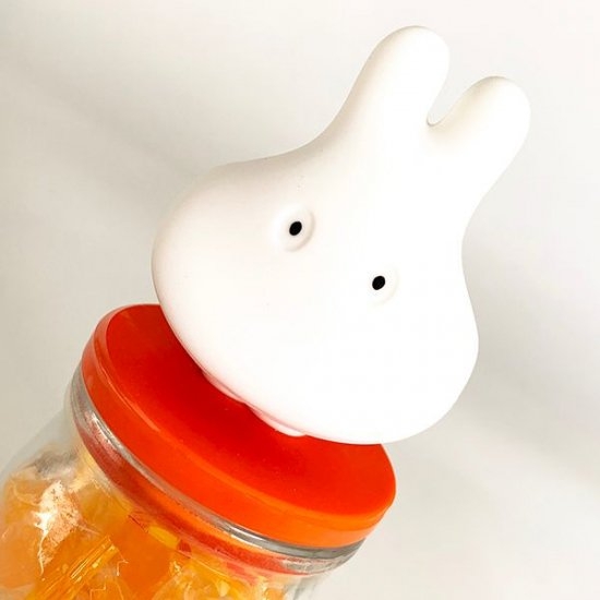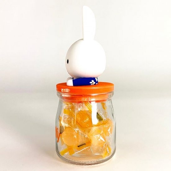 他のアイテムでもよく見かける、花柄のブルーのワンピースのおめかしミッフィーがフタの上にちょこんと乗っかっています。
