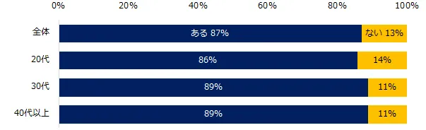 「転職を考える中で、不安な点・気になる点がはありませんか?」と伺うと、87%が「ある」と回答しました。具体的な不安な点・気になる点トップ3は、「自身の年齢」(56%)、「希望する転職先の有無」(48%)、「面接・選考で上手く話ができるか」(39%)でした。