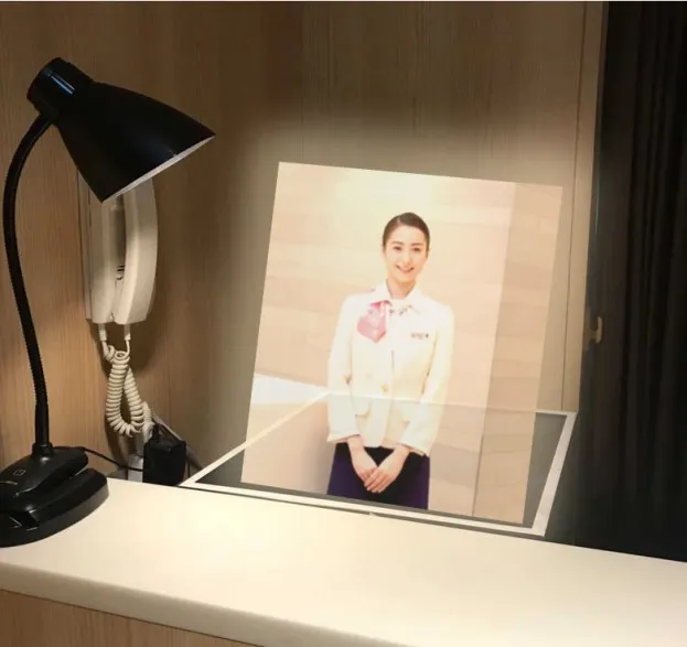 ※3:ガラス製の特殊なパネルにディスプレイを放射する光を通過させることで空中に映像を浮かび上がらせるホログラム映像技術です。