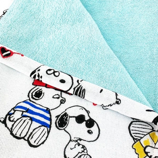 お風呂できれいになった後は、こんなバスタオルで体を包めばリゾート気分♪スヌーピーと仲良しなブラザーズのデザインに、ほっこりします。ビーチパラソルや浮き輪など、リゾート気分満載なモチーフもたくさんデザインされています。