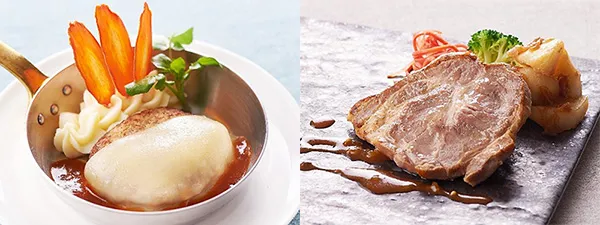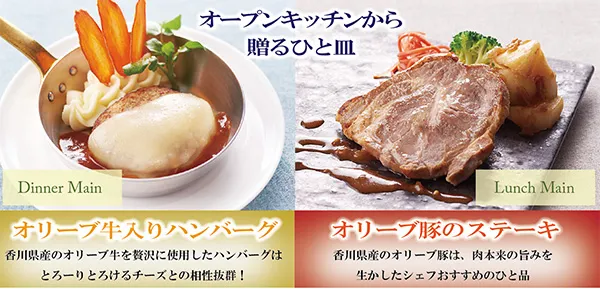 (画像左)<ディナー>チーズを纏ったオリーブ牛入りハンバーグ