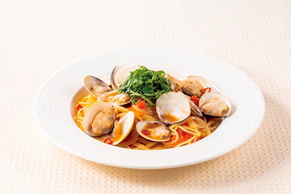 はまぐり、トマトを加えた和風のボンゴレ風スパゲティです。