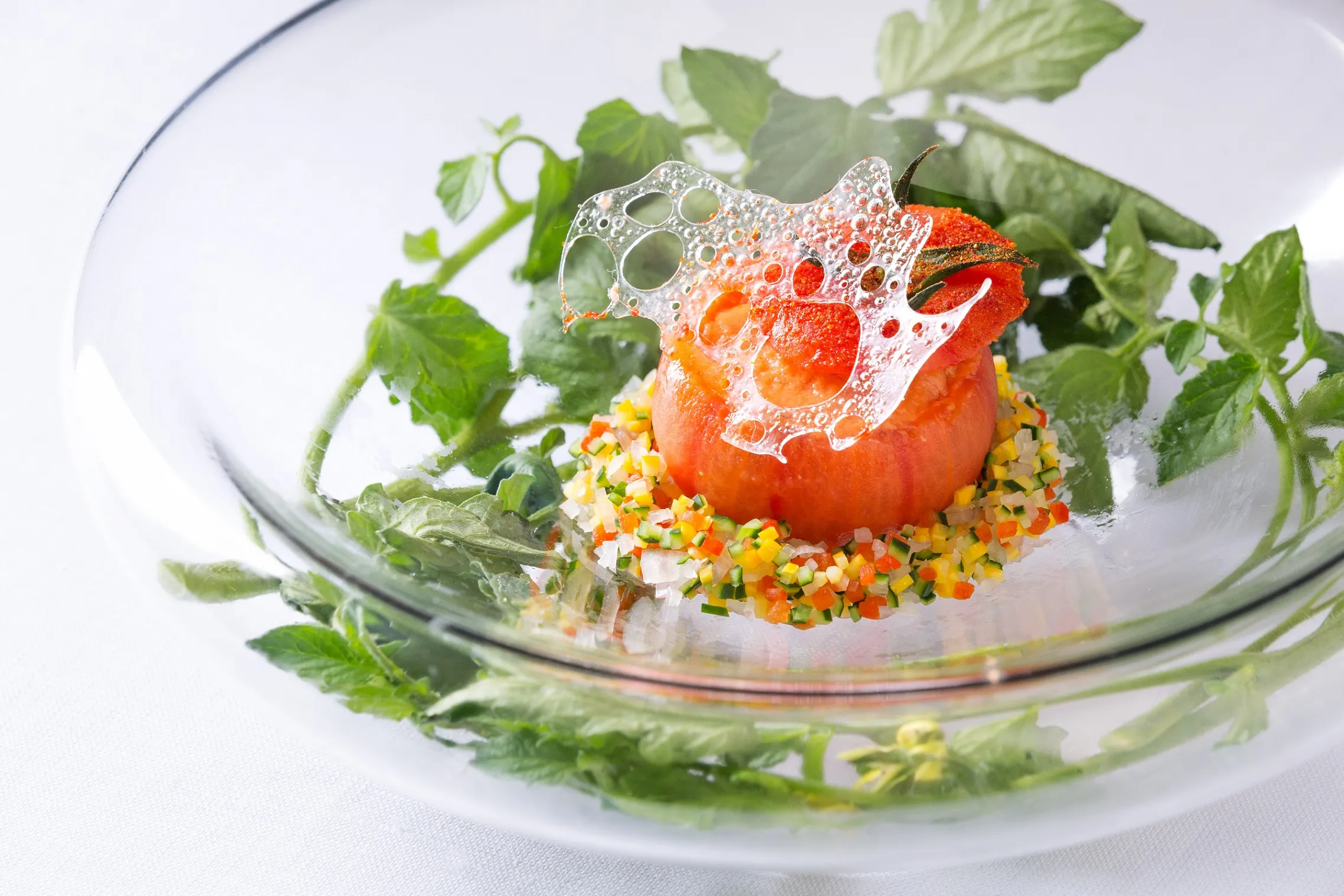 メインダイニングOTTO SETTEでは、シェフ自らが産地に赴き出会った素材を使ったイタリア料理を提供しています。特別コース「Vino e Verdura」(ヴィノ・エ・ヴェルドゥーラ)では、彩り鮮やかな前菜、濃厚なメインディッシュ、デザートまで野菜を主役にしたコースに、同じ土地で生まれたワインを合わせます。野菜とワインのマリアージュを堪能することができるコースです。