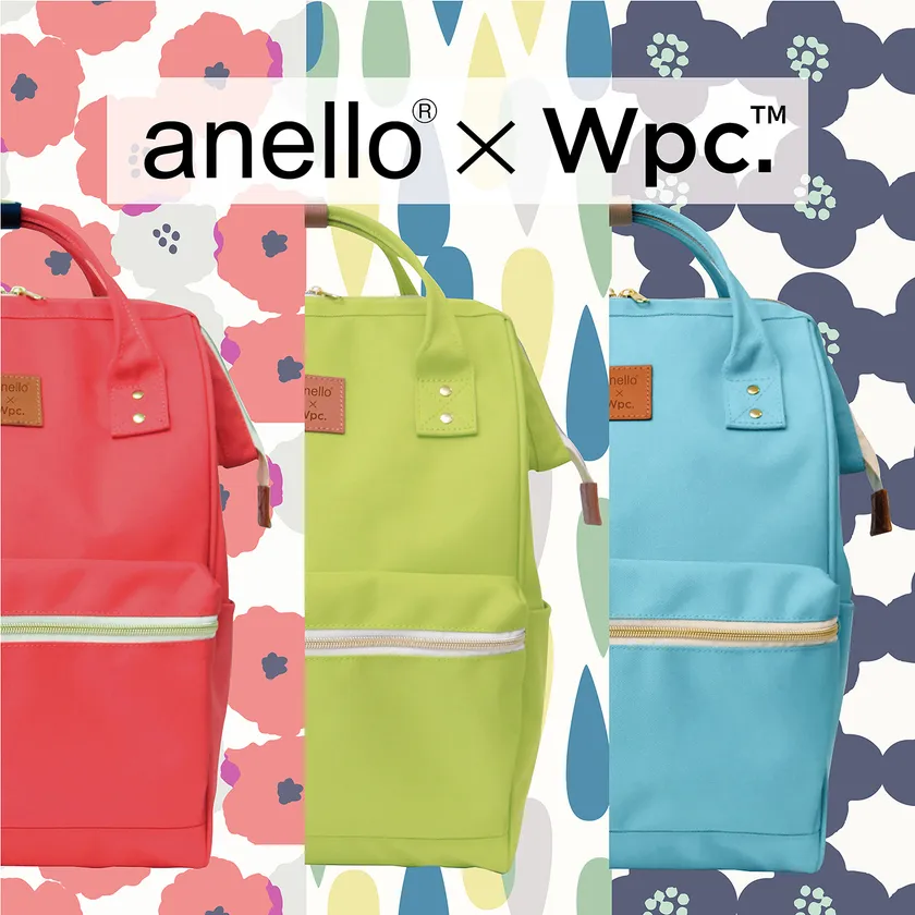 「anello(R)」のアイコンであるKUCHIGANE(口金)リュックの型はそのままに、ワールドパーティーのマスターブランド「Wpc.(TM)」のオリジナル生地を使用した特別なコラボが実現しました。