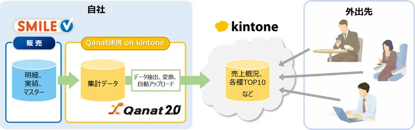 「Qanat 2.0」の技術で「SMILE V 販売」と「kintone」がつながることにより、「SMILE V 販売」を利用される様々な業種・業態のお客様が、販売管理データをモバイル活用し、営業力をさらに強化されることを期待しております。
