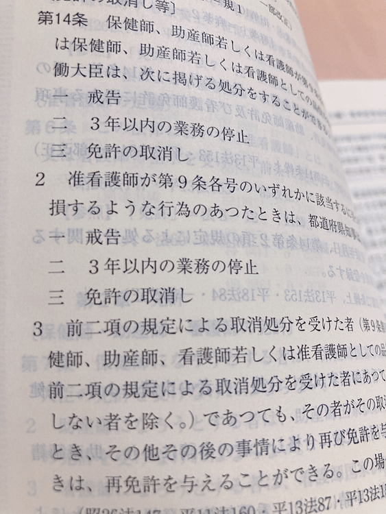◆「保健師助産師看護師法」「看護師等の人材確保の促進に関する法律」には、それぞれの条文末尾に、関係する定義・罰則等を定めた規定の条数を明示した【参照】を掲載。
