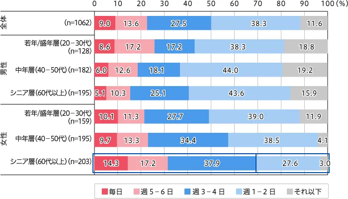 【図3】年代別のスーパーで食品購入する日(単一回答・n=1062)