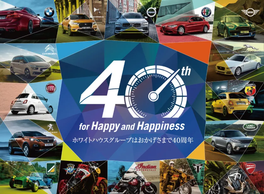 グループ内の愛知県内にある25拠点以上のショールームから、「オートプラネット名古屋」に約400台の世界の輸入車や輸入バイクを集めて、ホワイトハウス40周年を記念したスペシャルプライスでご用意いたします。イベント中に限りご成約プレゼントもご用意。