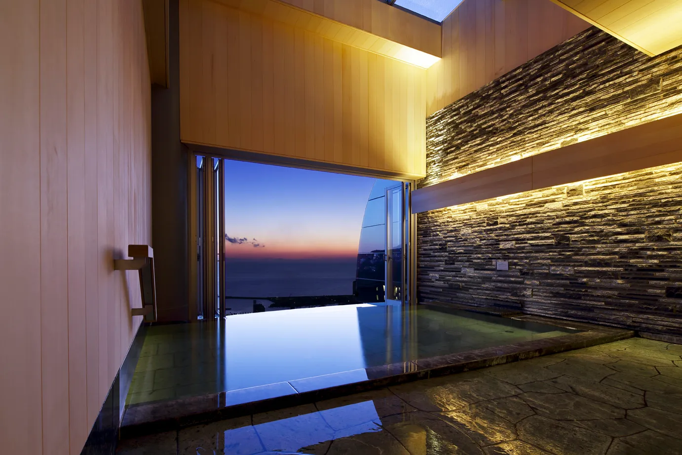 2011年12月に開業した熱海の山上の地に佇む全室オーシャンビューのリゾートホテル。スタイリッシュな空間デザインに加え、相模湾と熱海の街並みを一望する絶景が魅力。熱海の花火や夜景を存分に楽しめる環境が整う。