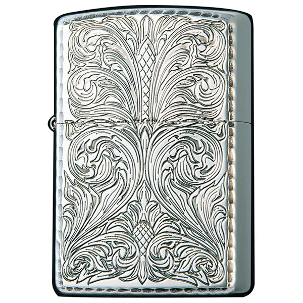 波や花をイメージしたデザインのZippoライターは、海辺で過ごす大人の休日にふさわしいアイテムです。高級感のある銀めっき仕上げを施しています。