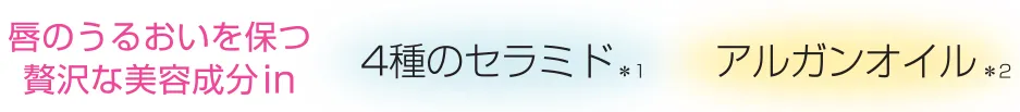 4種類のセラミド*1とアルガンオイル*2を贅沢に配合した濃厚バームが、唇の上でとろけて密着。ひと塗りで鮮やかな美発色を実現し、密着力にも優れているので美しい色とツヤが長時間持続します。唇のフォルムをきれいに見せるリッチなツヤ感は、ガサガサも縦ジワも目立たせません。心地よさと美しい仕上がりを兼ね備え、塗るたびに心まで彩るようなリップシリーズです。