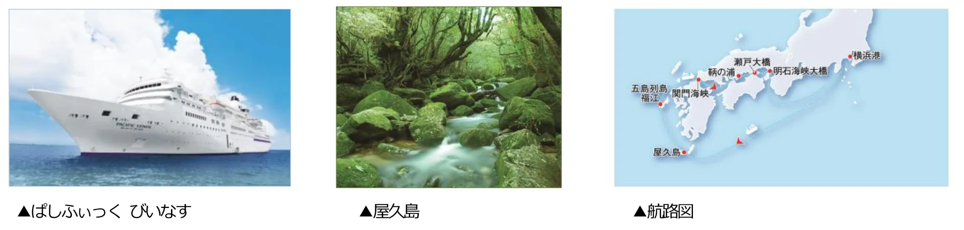 「ぱしふぃっく びいなす」チャーター企画 2つの世界遺産・万葉集の景勝地をめぐる! 横浜港 11月12日(火)出発 屋久島・五島列島 秋の絶景 瀬戸内海クルーズ6日間の旅 4月18日(木)発売