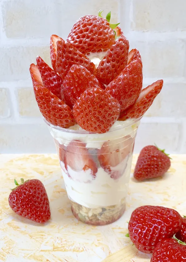 内容 :朝採り新鮮な完熟いちごを贅沢に使用したプレミアムなパフェ。