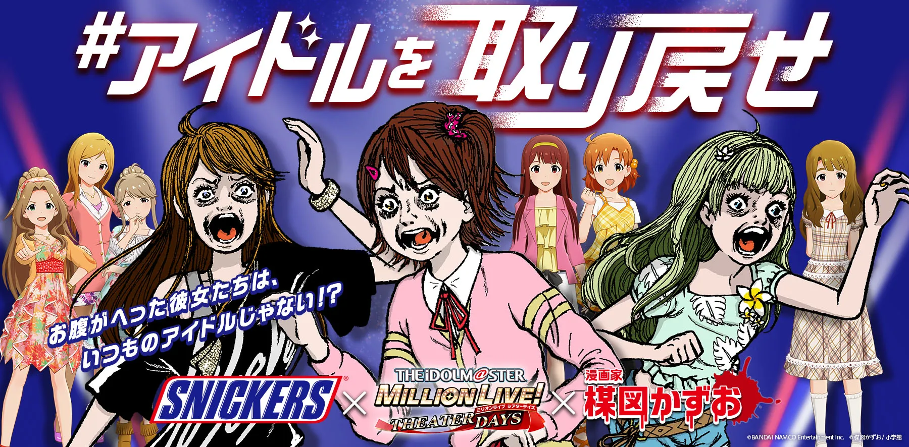 マース ジャパン リミテッド(本社:東京都港区、社長:フー・チァファン)は、人気チョコレートバーブランド「スニッカーズ(R)」と人気ゲーム「アイドルマスター ミリオンライブ! シアターデイズ(以下、ミリシタ)」、有名漫画家の楳図かずお先生とコラボレーションしたデジタルキャンペーン、「#アイドルを取り戻せ」のセカンドシーズンを、4月30日10時から開始します。