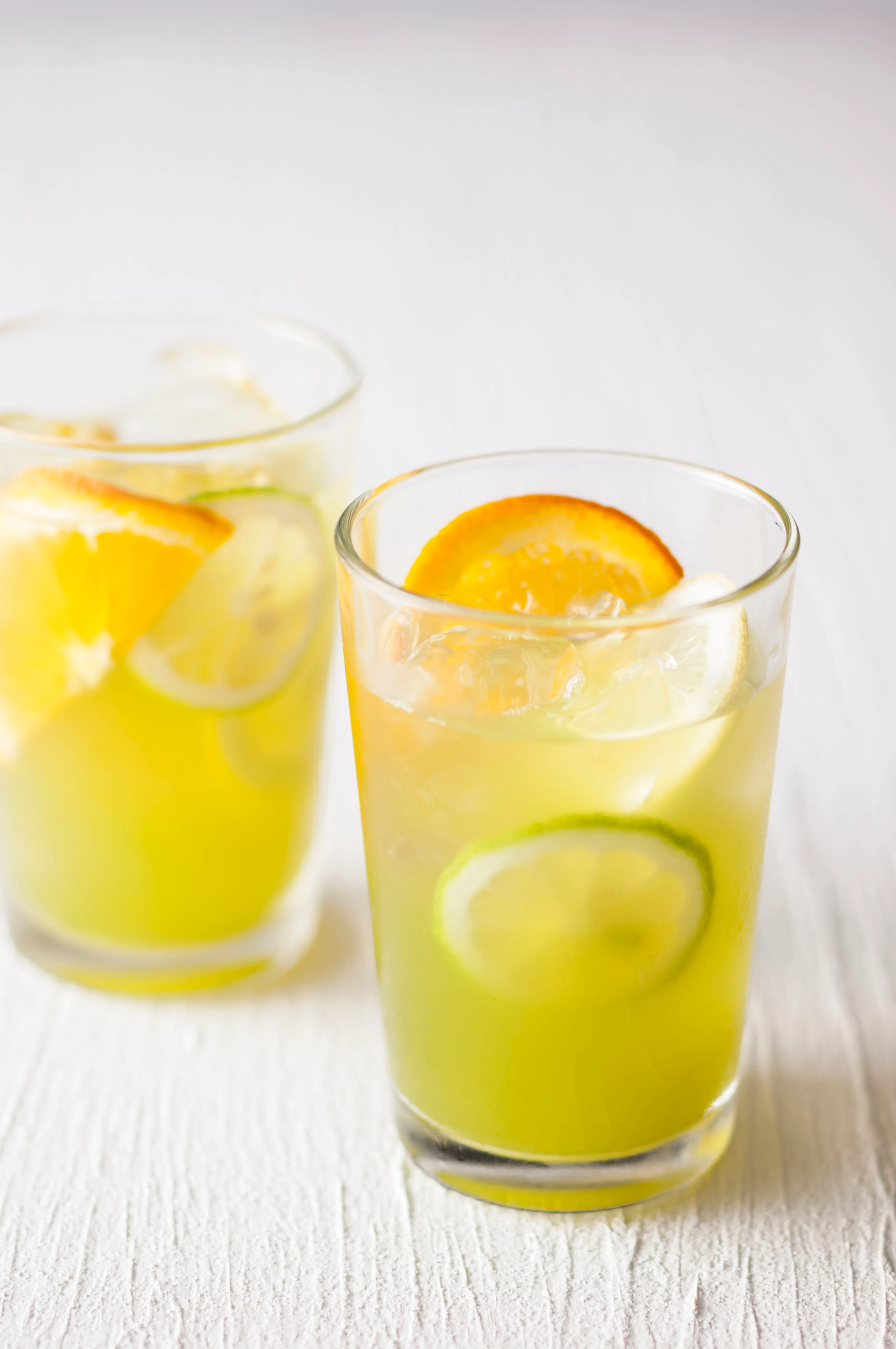 レモンやオレンジをキュッと絞ってお洒落なグリーン ティーに