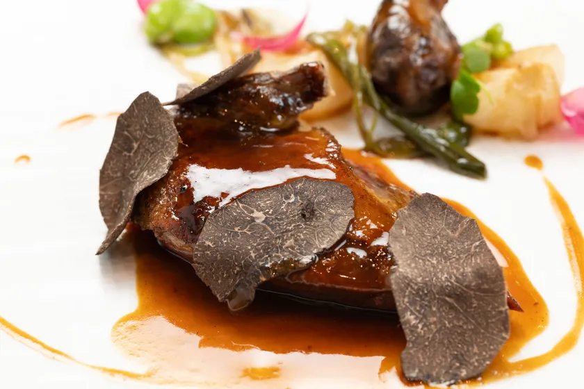 アミューズ二品目 オリーブ牛のロースと国産牛のほほ肉のラビオリ