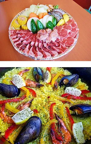 (画像上から)バーベキューセット4人前、パエリア イメージ