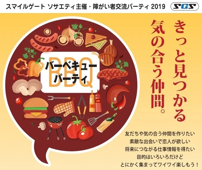 株式会社スマイルゲートパートナーズ(本社:神戸市中央区)は、当社が展開している障がい者のための結婚相談事業「スマイルゲートソサエティ」のイベントとして、2019年4月27日(土)に、山田池公園「GoodBBQ」(所在地:大阪府枚方市山田池公園)での交流や出会いをお望みの18歳以上の障がい者男女を対象とした交流パーティーを開催します。