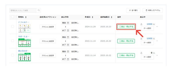 今回のアップデートでは、リッチメニューの表示・停止をリッチメニュー管理画面から直接行えるようになりました。